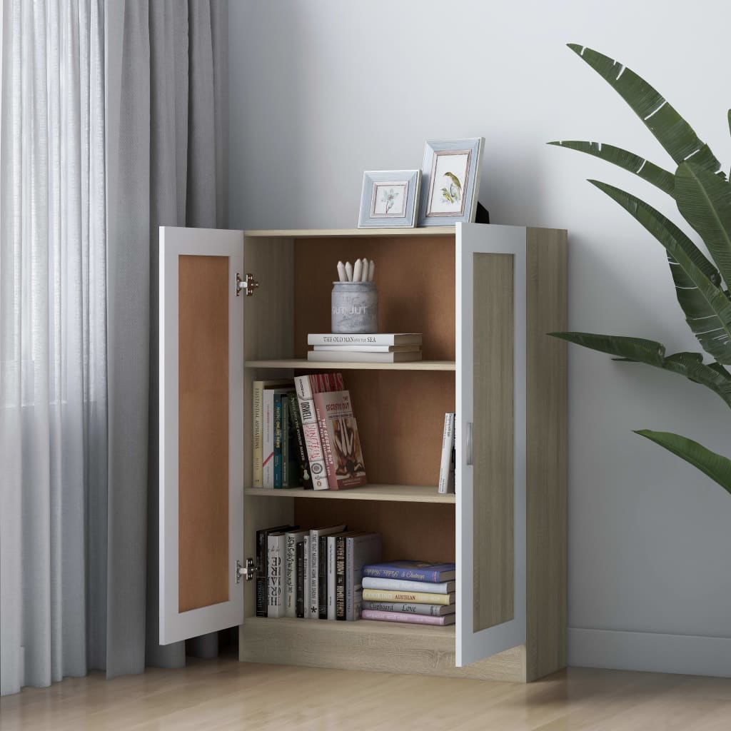 Bibliothèque Blanc et chêne sonoma 82,5x30,5x115 cm Aggloméré 82.99