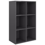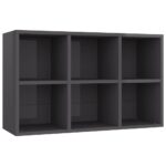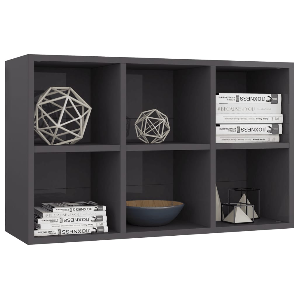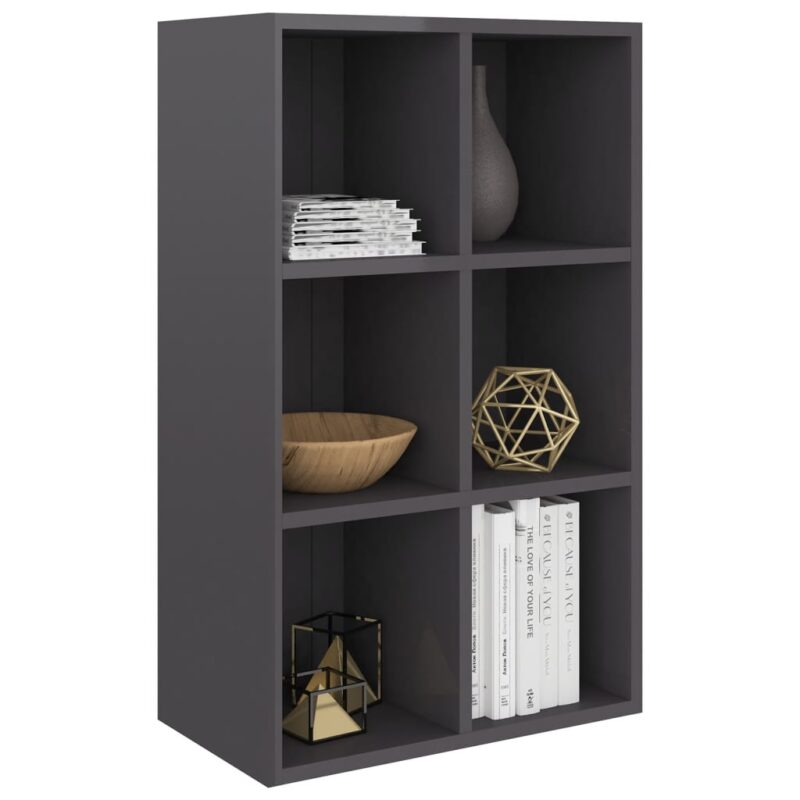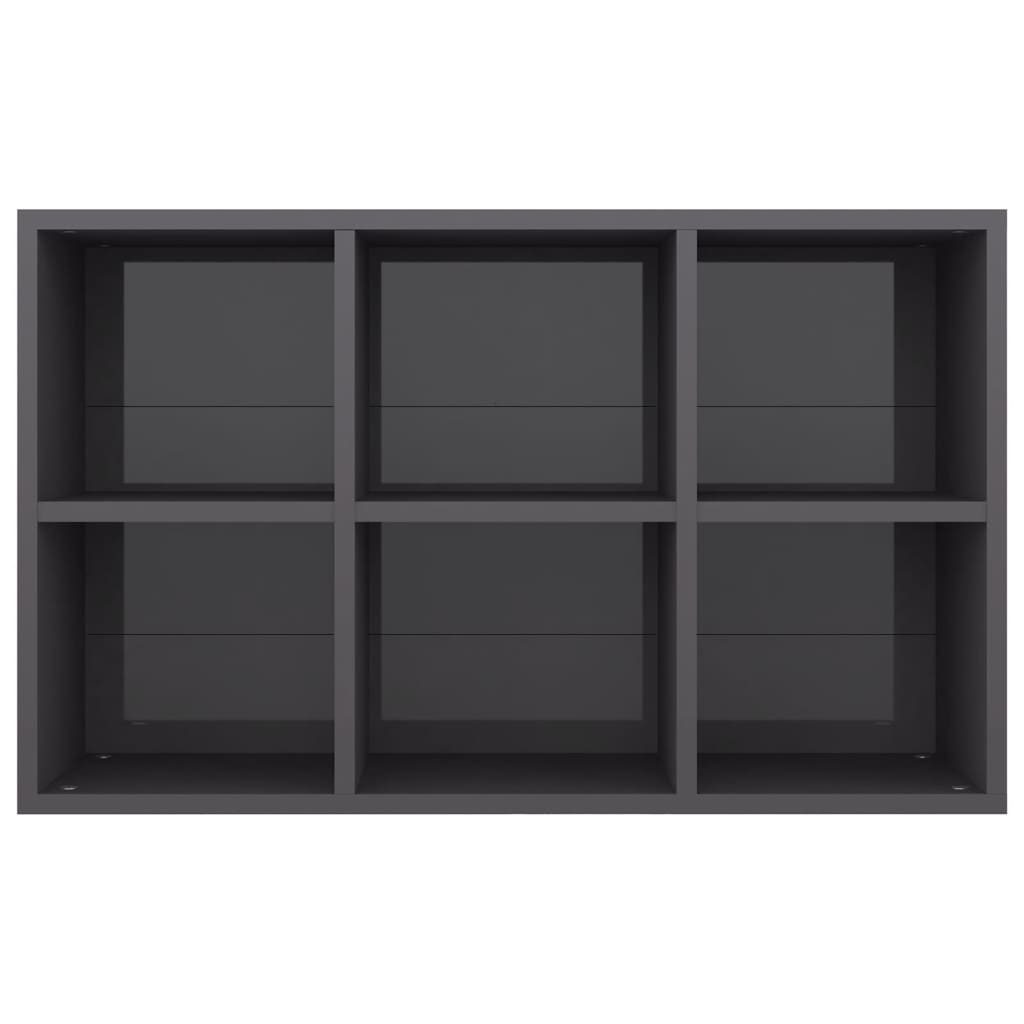 Conjuguant élégance et utilité, la Bibliothèque/Buffet Gris brillant 66x30x97,8 cm Aggloméré est un ajout raffiné qui rehausse l’aménagement de tout intérieur. Sa construction en panneaux d’aggloméré garantit robustesse et pérennité. Présentant six espaces de rangement, elle est parfaite pour organiser vos lectures, vos films, ainsi que vos équipements multimédias, tout en les gardant accessibles.