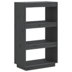 Sublimez votre intérieur avec la dualité esthétique et pratique de cette Bibliothèque/Cloison Gris 60x35x103 cm Bois de pin massif. Conçu pour enrichir votre espace avec style, cet élément d’ameublement est sculpté à partir de bois de pin solidifié, assurant ainsi une durabilité et une stabilité exceptionnelles. Avec une capacité de stockage considérable, organisez avec aisance vos ouvrages, périodiques, films, matériels audiovisuels et objets ornementaux qui seront accessibles en toute facilité. Au-delà de sa fonction traditionnelle de rangement, cette bibliothèque innovante peut également jouer le rôle de séparateur d’espace intelligent, ce qui la rend idéale pour agrémenter votre hall d’entrée ou tout autre espace vivant. L’entretien de ce meuble est un jeu d’enfant : un simple chiffon humide suffira pour le nettoyage.