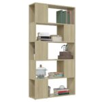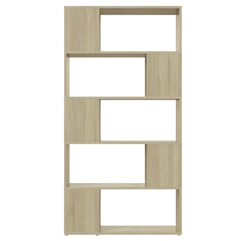 Alliez fonctionnalité et élégance avec cette Bibliothèque de séparation Chêne sonoma 80x24x155 cm Aggloméré, conçue pour agencer et embellir votre intérieur. Non seulement elle joue le rôle d’une étagère de rangement, mais elle fait également office de séparateur d’espace, idéal pour délimiter avec goût vos différentes zones de vie. Cette bibliothèque offre structure et solidité pour une utilisation durable grâce à son agencement robuste. Elle est dotée de cinq compartiments généreux qui vous permettent d’ordonner aisément livres, magazines, supports multimédia et éléments de décoration, tout en les gardant facilement accessibles.
