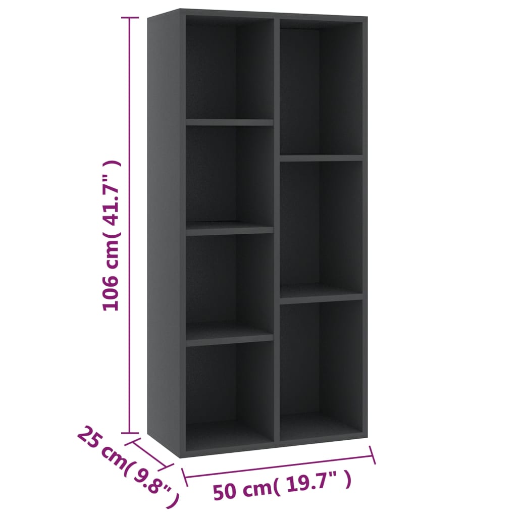 Cette bibliothèque Gris 50x25x106 cm Aggloméré marie avec brio style et fonctionnalité, en devenant un incontournable de votre intérieur. Son matériau en aggloméré lui confère solidité et pérennité, assurant ainsi votre investissement sur le long terme. Les 7 étagères généreusement dimensionnées permettent de classer livres, collectibles et gadgets électroniques en toute simplicité, tout en les gardant facilement accessibles. Parfait pour s’évader dans des univers littéraires sans bouger de chez soi, ce meuble est également aisé à entretenir, nécessitant juste un rapide essuyage avec un chiffon mouillé. L’assemblage de cette pièce est un jeu d’enfant.