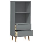 Explorez la fonctionnalité et l’élégance avec la bibliothèque gris en bois massif de pin