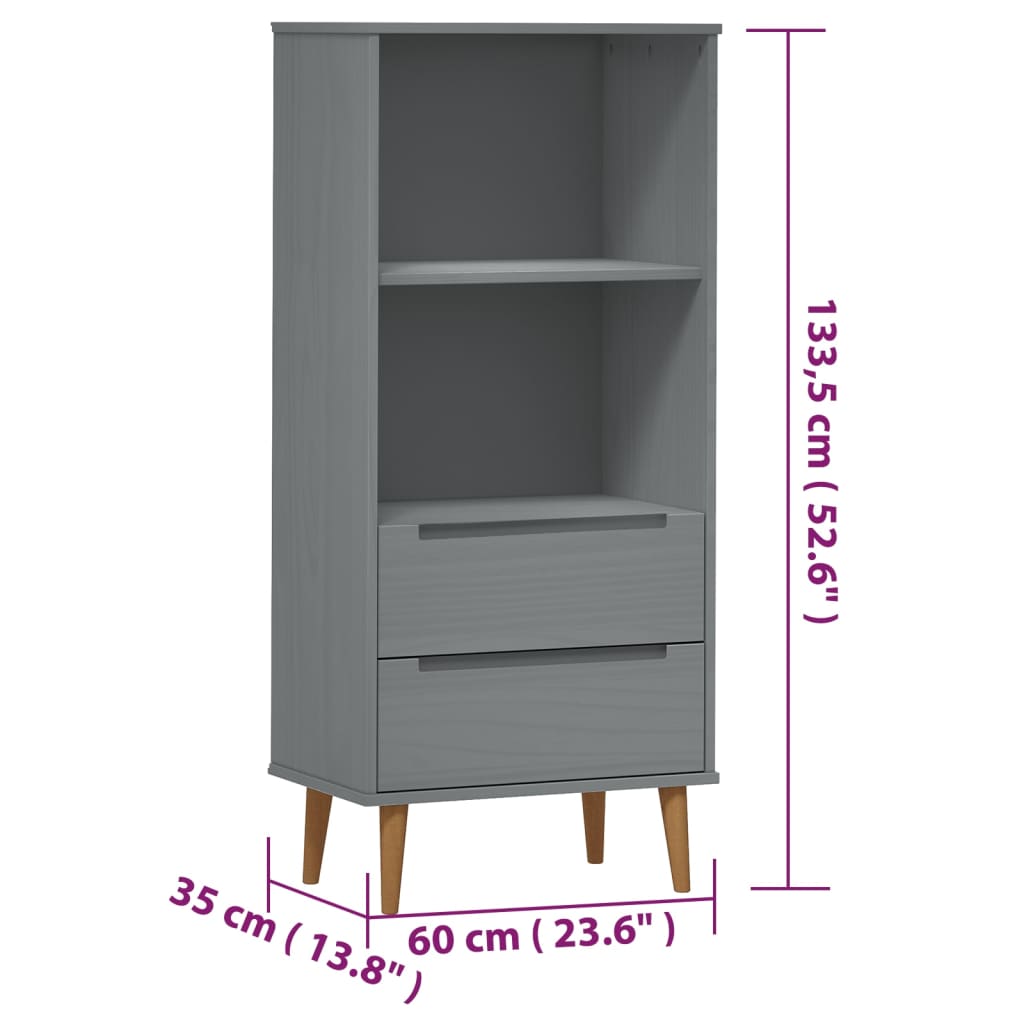 Apportez un cachet naturel et une touche scandinave à votre espace avec notre élégante Bibliothèque Gris 60x35x133,5 cm Bois massif de pin. Son bois massif de pin séduit par son charme authentique, habillé d’un grain distinct et de nœuds qui ajoutent du caractère à votre intérieur.