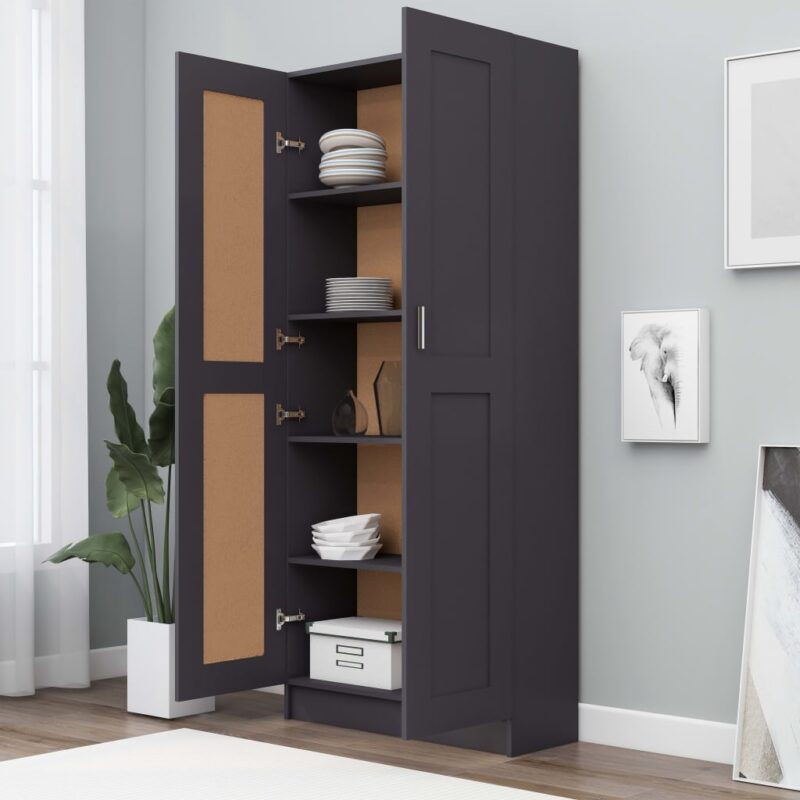 L’élégance fonctionnelle de la Bibliothèque Gris 82,5×30,5×185,5 cm Aggloméré s’intégrera aisément dans votre environnement. Ses mesures généreuses permettront un classement idéal de vos affaires quotidiennes ou décoratives.