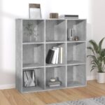 Optez pour l’élégance intemporelle avec la Bibliothèque Gris béton 98x30x98 cm Aggloméré, un choix parfait pour améliorer l’esthétique tout en augmentant la fonctionnalité de votre intérieur. Fabriquée avec un aggloméré de haute qualité, cette bibliothèque se distingue par sa robustesse et sa longévité. Elle dispose de neuf compartiments vastes, idéaux pour conserver vos livres, revues, DVDs et autres objets décoratifs bien organisés et facilement accessibles. L’entretien est un jeu d’enfant : un coup de chiffon humide suffit. De plus, l’assemblage est simple grâce au matériel de montage fourni.