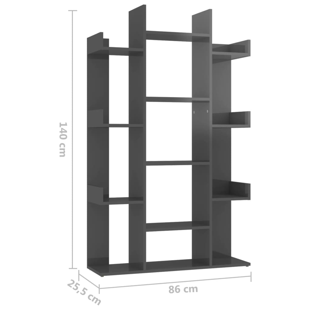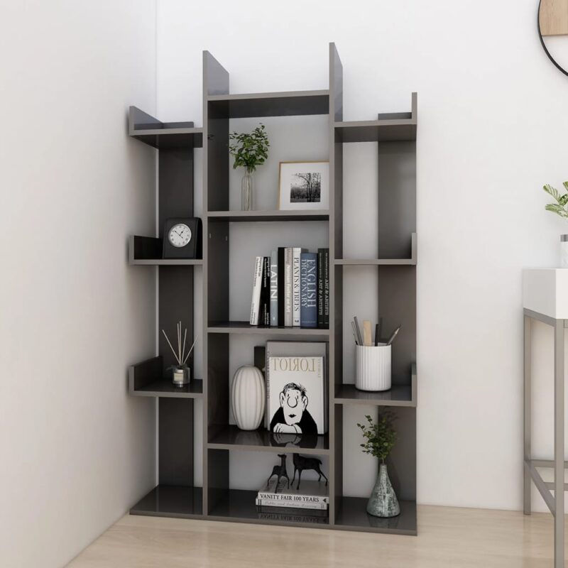 Adoptez cette élégante Bibliothèque Gris brillant 86×25,5×140 cm Aggloméré et réorganisez votre espace de vie avec un charme fonctionnel. Elle peut accueillir bien plus que des livres. Imaginez-y vos CD, objets de déco, voire même quelques touches de verdure grâce à des plantes. Grâce à ses treize cases de rangement, stabilisée par une structure solide, elle promet durabilité et sécurité. Ses panneaux latéraux et ses deux renforts à l’arrière préservent vos affaires d’éventuelles chutes.