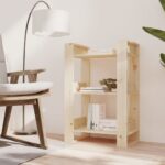 Enhance your home’s ambiance with this versatile wooden bookcase that doubles as an elegant room divider. Crafted from premium solid pine, this piece adds a dash of functional flair to any interior setting. Its untreated surface offers versatility, allowing you to finish it in oil, wax, lacquer, or glazing for increased durability and simplified cleaning. The natural straight grain and distinctive knots of pine wood lend a rustic charm to the bookcase.