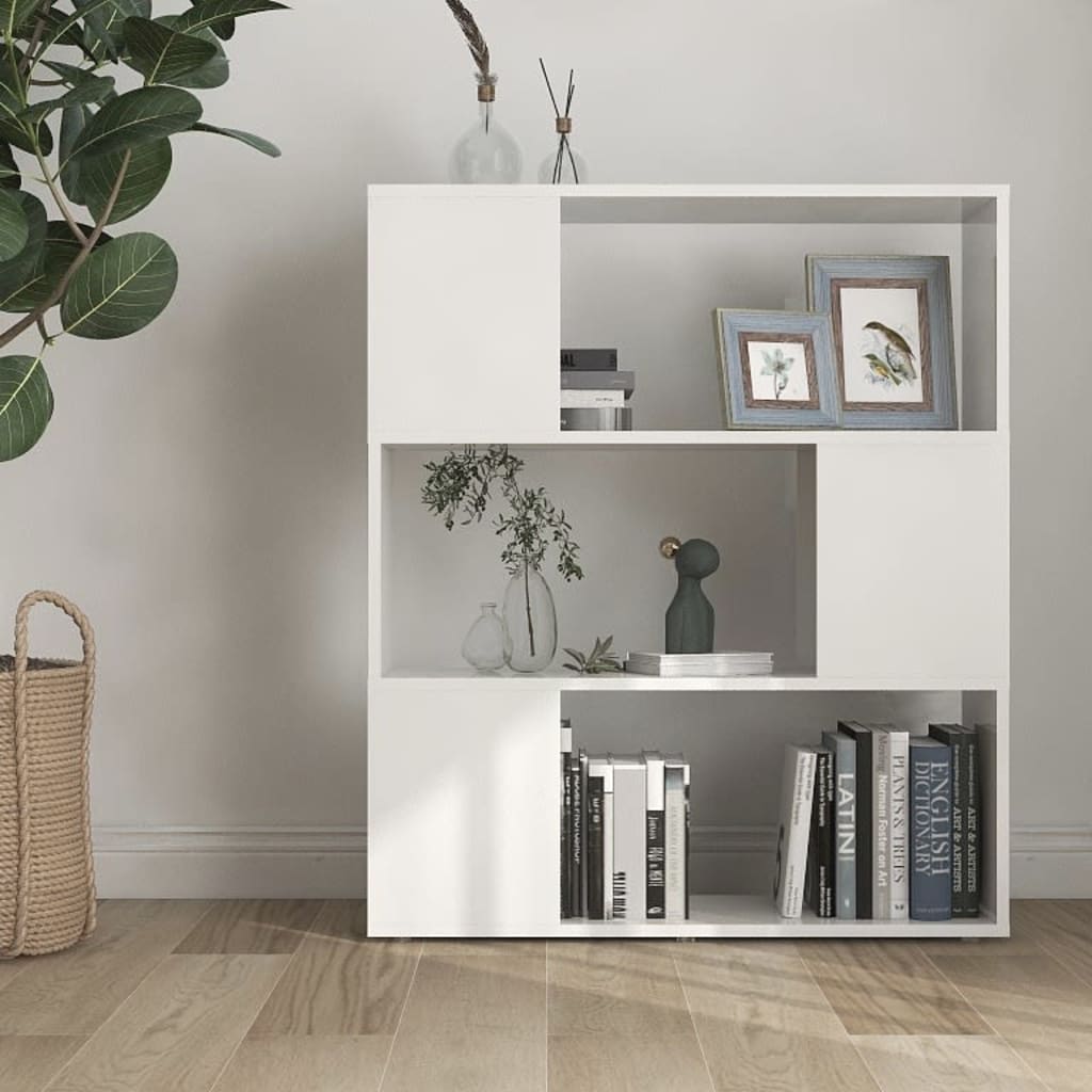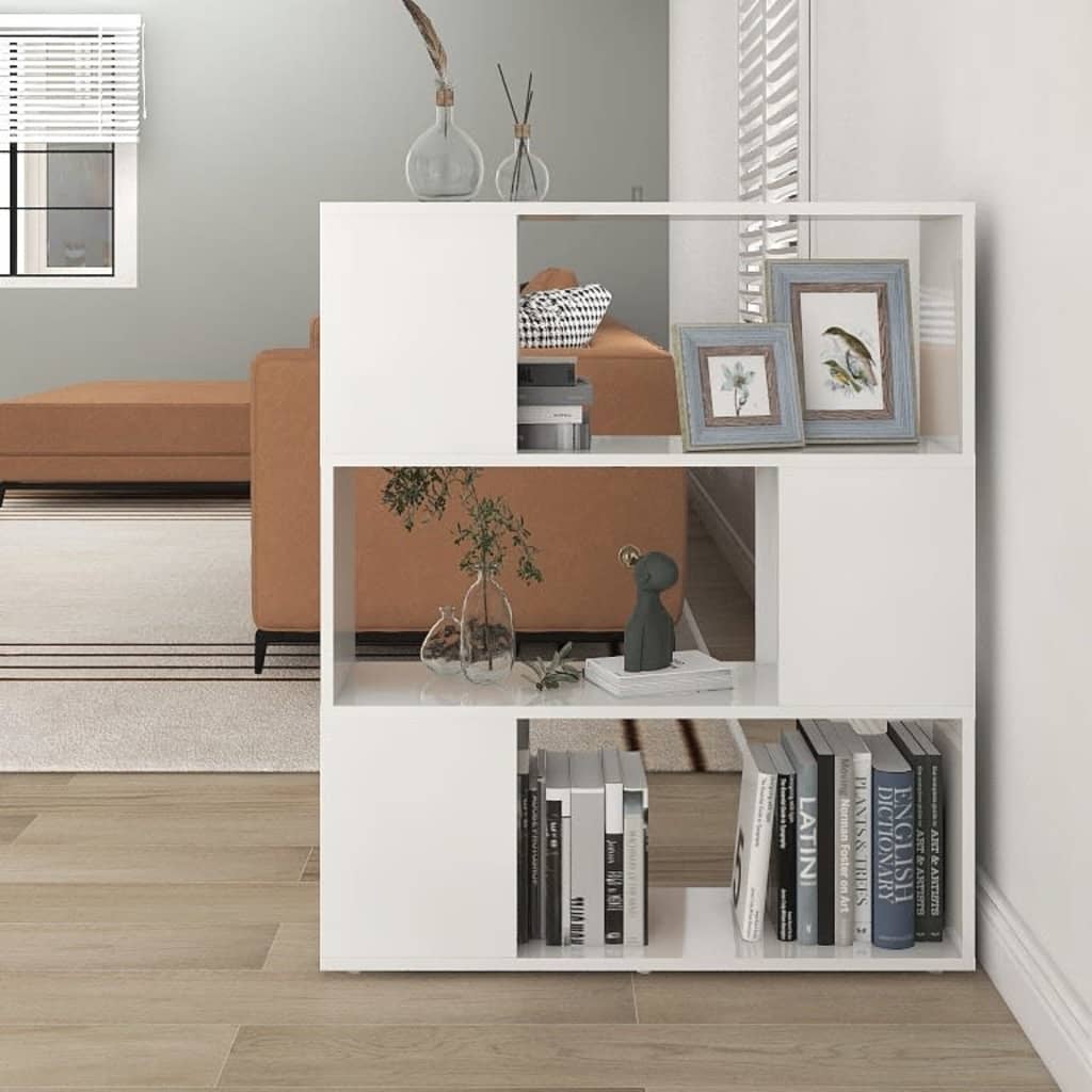 Ajoutez une touche de finesse tout en organisant avec goût votre espace grâce à notre bibliothèque/séparateur de pièce blanc brillant 80x24x94 cm. Conçu pour fusionner élégance et fonctionnalité, cet élément de mobilier transforme n’importe quel espace tout en offrant une solution de rangement astucieuse. Profitez d’étagères robustes et résistantes pour exposer vos objets favoris, que ce soit des livres ou des objets de décoration.