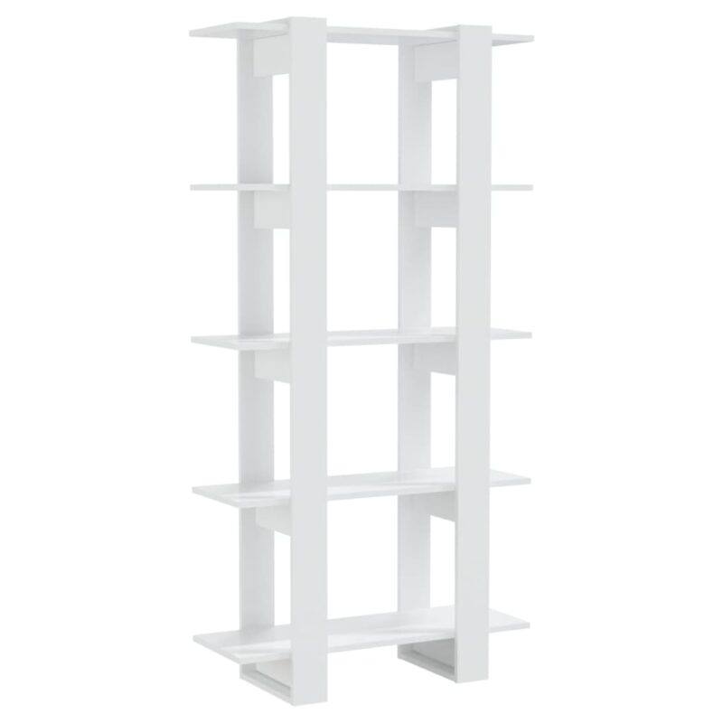Cette bibliothèque/séparateur de pièce blanc brillant est un must-have polyvalent
