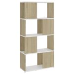 La bibliothèque/séparateur de pièce Blanc et Chêne 60x24x124,5 cm est une fusion parfaite entre esthétique raffinée et versatilité pratique qui complétera harmonieusement votre espace de vie. D’une construction solide, elle se distingue par sa longévité et sa fiabilité sur le long terme. Avec ses quatre compartiments spacieux, cette étagère fait presque figure d’œuvre d’art, tout en offrant un espace de rangement optimal pour vos livres, revues, collections de DVD et gadgets multimédia, assurant ainsi que vos trésors personnels restent bien rangés et facilement accessibles. Situez là dans une zone lumineuse de votre domicile pour créer un coin lecture accueillant.