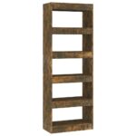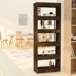 Introduisant une esthétique sophistiquée et intemporelle à votre intérieur, ce meuble boisé ne se contente pas d’embellir l’espace mais répond également à vos besoins pratiques. Il offre la robustesse et la solidité nécessaire pour tenir fermement. Non seulement cette Bibliothèque/Séparateur de pièce Chêne fumé 60x30x166 cm offre ample espace pour le rangement de vos revues, collections littéraires, films, dispositifs multimédias et ornements divers, mais elle permet aussi de les organiser méthodiquement tout en les gardant accessible avec facilité. Elle sert aussi d’excellent séparateur, apportant une délimitation élégante aux zones de vie et hall d’entrée. Dénotant une simplicité d’entretien, elle se nettoie aisément avec une étoffe légèrement humide.