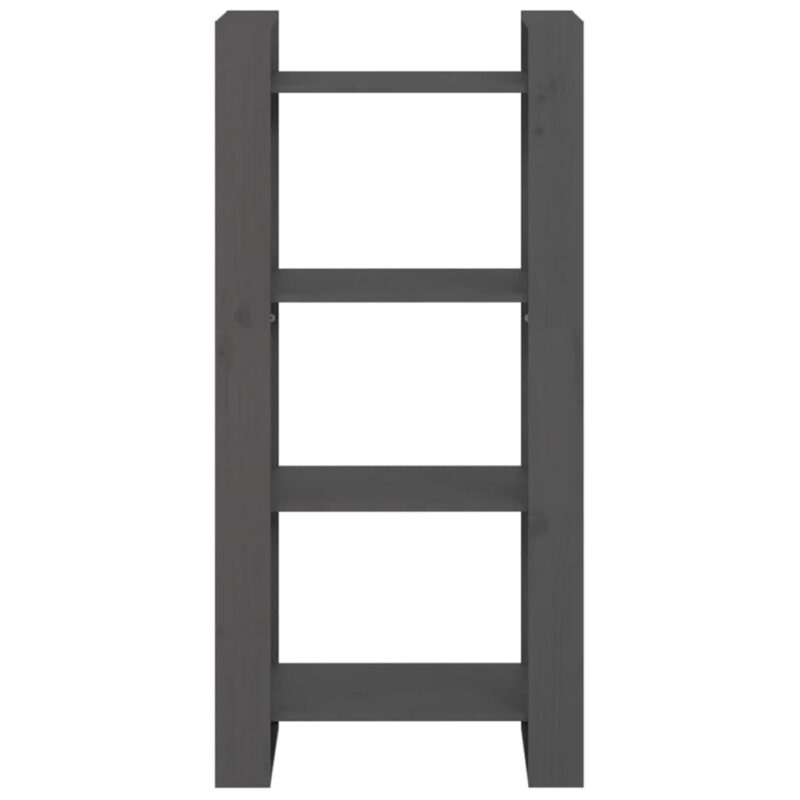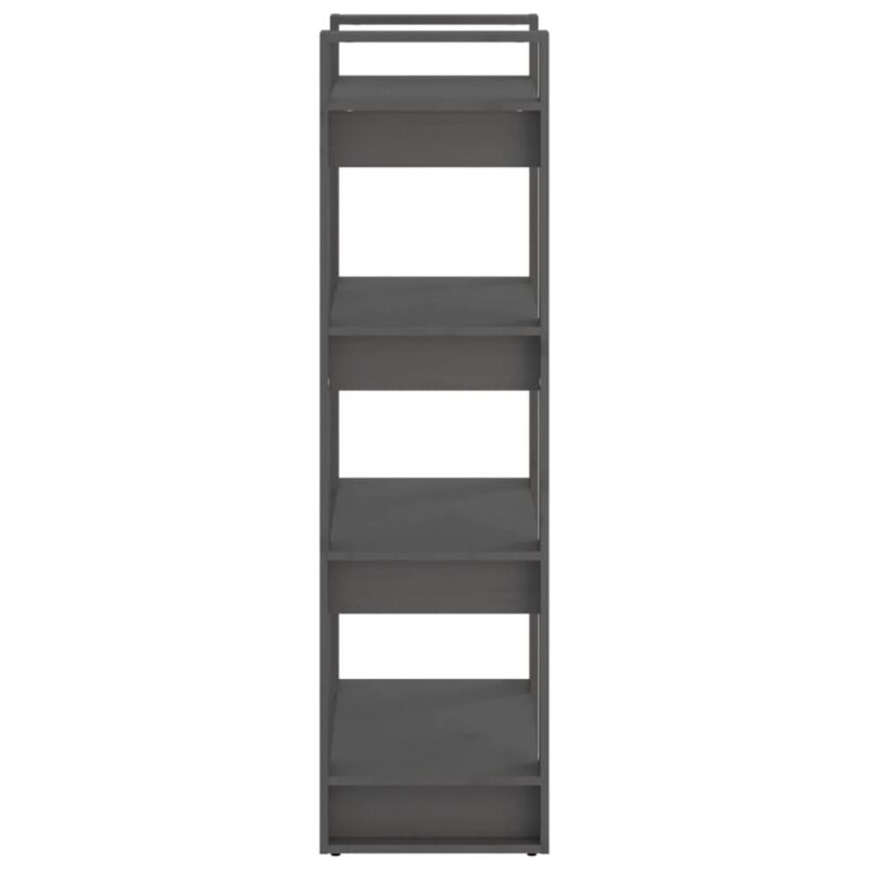 Donnez un coup de jeune à votre intérieur avec notre bibliothèque/séparateur de pièce Gris 60x35x125 cm Bois massif, conçu pour ajouter une touche décorative et fonctionnelle à vos espaces. Multifonction, ce meuble élégant fait office tantôt de rangement pour vos lectures, tantôt de cloison créant ainsi différentes zones dans une même pièce.