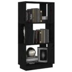 Bibliothèque/Séparateur de pièce Noir 51x25x101 cm Pin solide 65.99