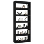 Transformez votre espace avec la Bibliothèque/Séparateur de pièce Noir 80x30x199,5 cm Pin solide