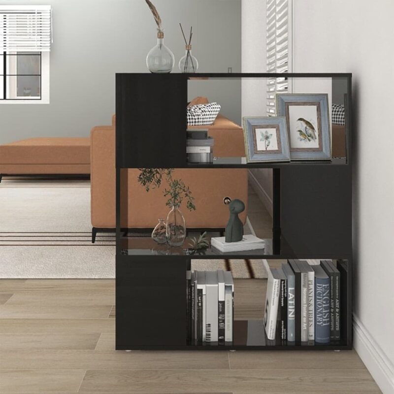 Détails de la bibliothèque/séparateur de pièce noir brillant 80x24x94 cm