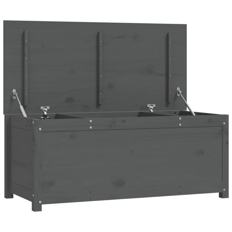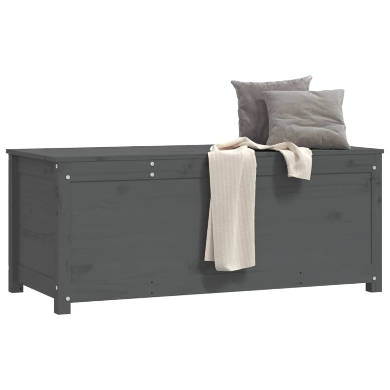 Maximisez l’efficacité de l’organisation de votre espace avec notre Boîte de rangement Gris 110x50x45,5 cm Bois massif de pin; un ajout esthétique et pratique qui sublime l’ordre de votre intérieur. Confectionné à partir de bois de pin robuste, ce coffret allie attrait naturel et durabilité. Sa texture authentique est mise en valeur par le grain épuré du bois et des nœuds distinctifs qui lui confèrent un charme rustique unique.