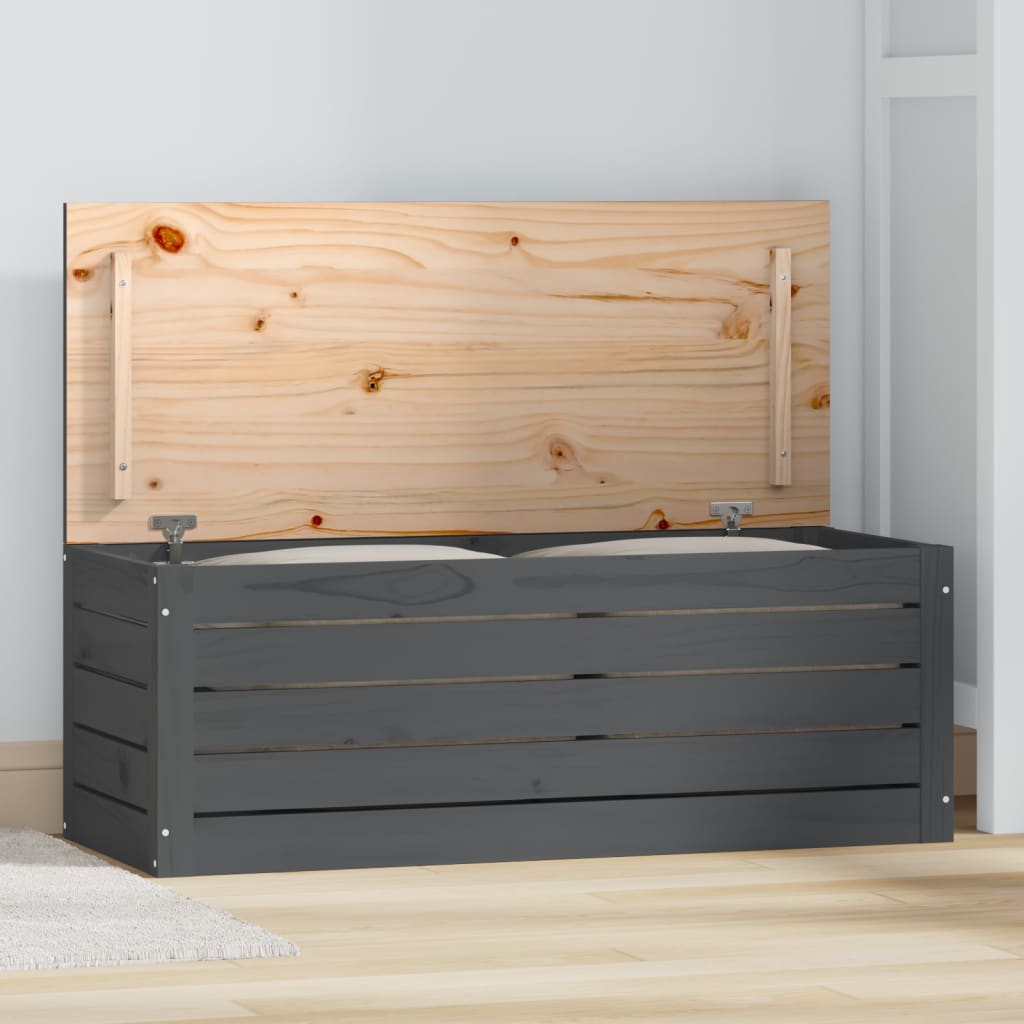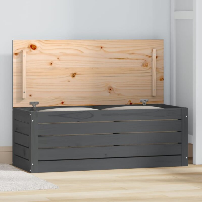 Soyez maître de l’ordre dans votre espace grâce à cette Boîte de rangement Gris 89×36,5×33 cm Bois massif de pin, parfaite pour dissiper l’accumulation quotidienne. Fabriquée dans un bois de qualité supérieure, chaque boîte est dotée d’un grain distinct et de nœuds charismatiques, offrant un charme rustique à toute pièce.