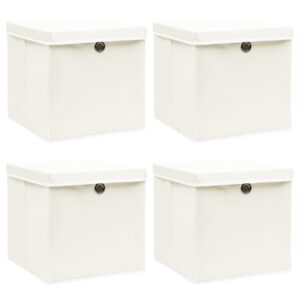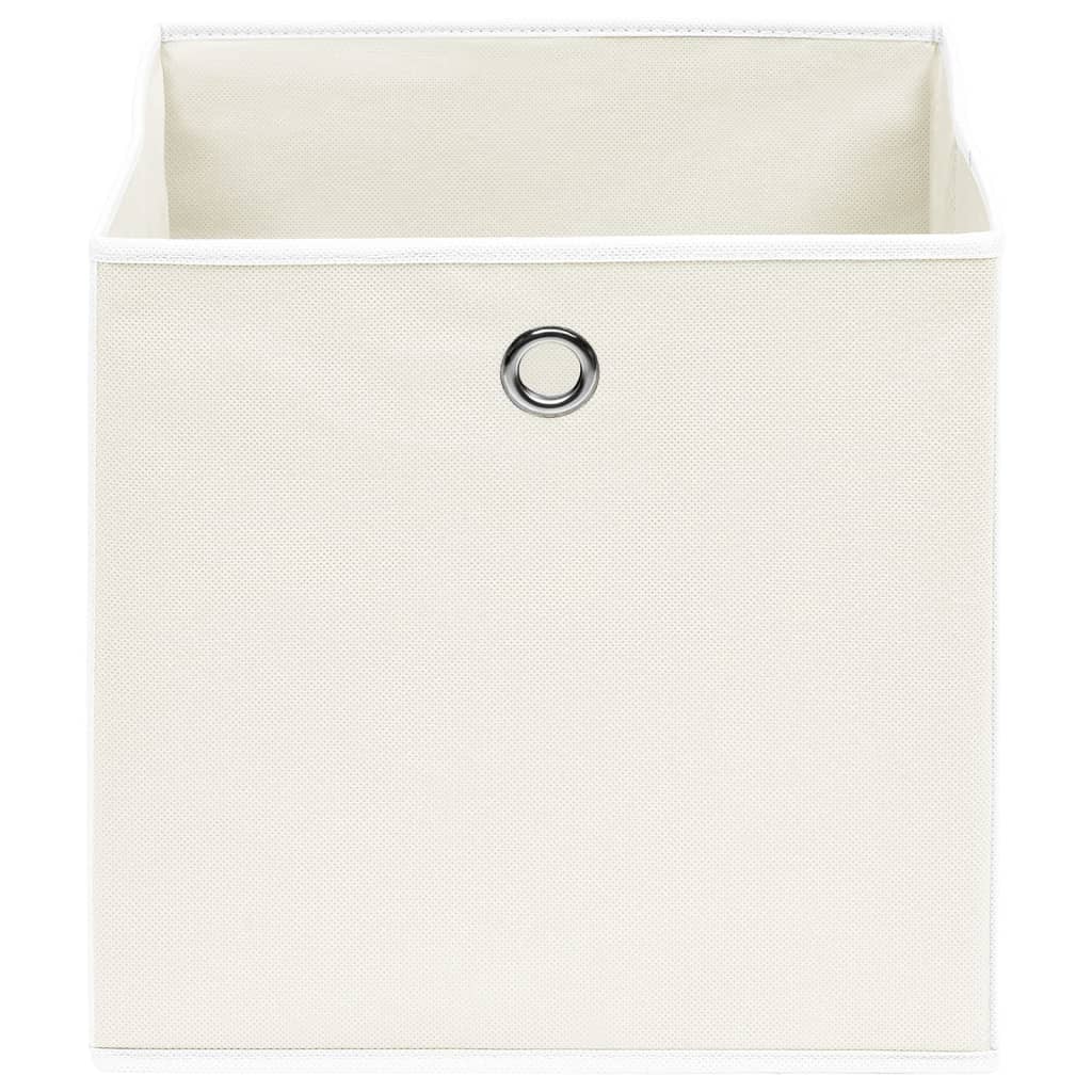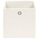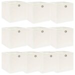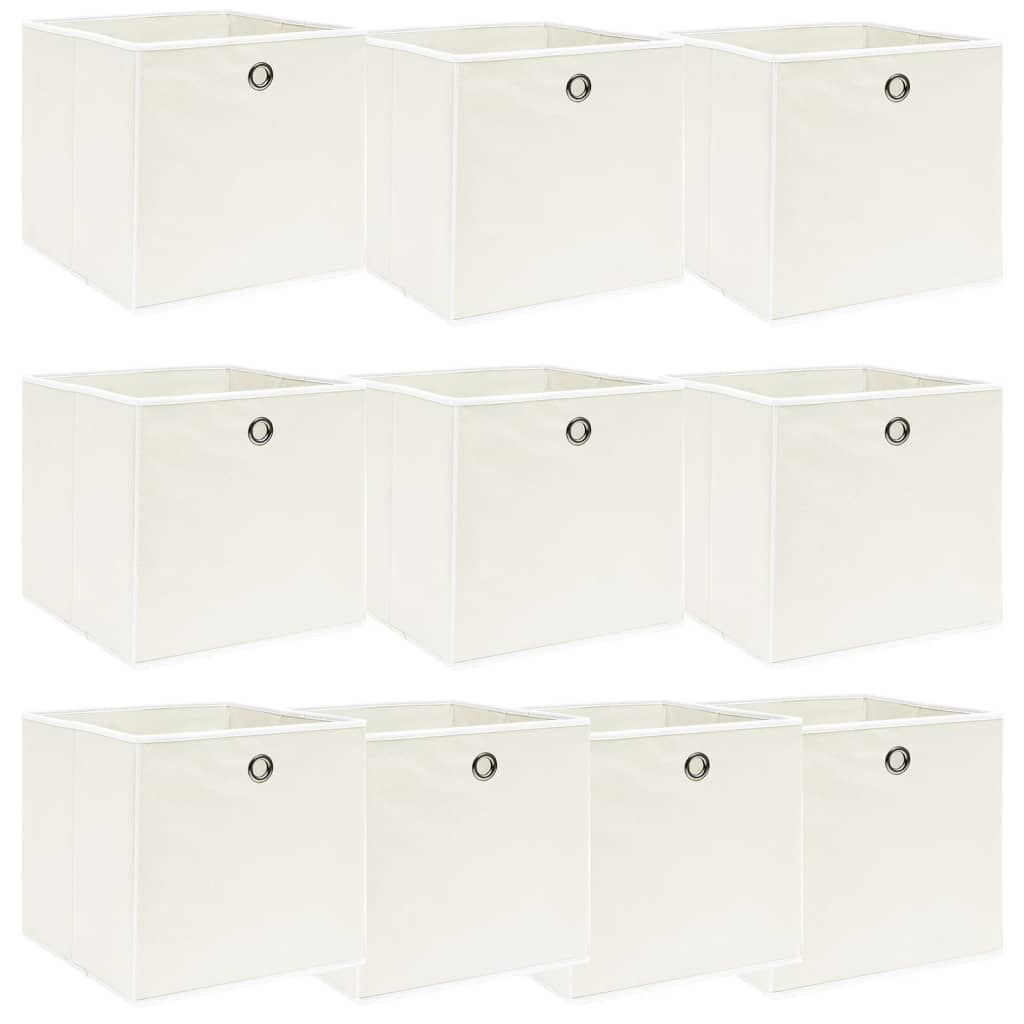 Les Boîtes de rangement 10 pcs Blanc 32x32x32 cm Tissu sont la solution idéale pour organiser vos accessoires de mode tels que foulards, chaussettes et lingerie tout en apportant une touche d’élégance à votre intérieur. Conçues avec un tissu non tissé éco-responsable, ces boîtes allient durabilité et respect de l’environnement. Grâce à leur œillet métallique, elles sont aisément manipulables, vous permettant de les retirer sans effort de n’importe quel placard ou étagère. Et si vous n’avez pas besoin de les utiliser, elles se plient facilement pour un rangement qui ne prend pas de place.