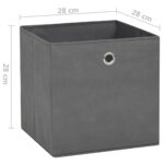 Optimisez votre espace avec style grâce à notre ensemble de boîtes de rangement 10 pcs Tissu intissé 28x28x28 cm Gris, conçu pour s’intégrer harmonieusement avec la plupart des étagères. Fabriquées à partir de tissu intissé, ces boîtes allient durabilité et respect de l’environnement, offrant une solution de rangement idéale pour les petits articles tels que les accessoires, les vêtements légers et plus encore. L’aspect pratique se mêle à l’élégance avec un œillet métallique sur chaque boîte, simplifiant la manipulation et apportant une touche de raffinement à l’ensemble.