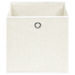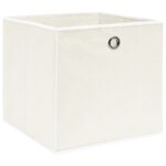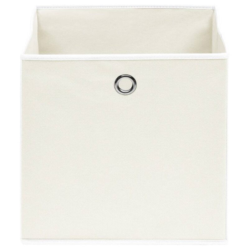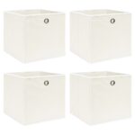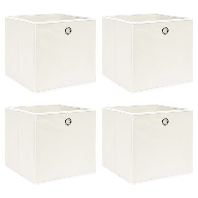 Un ensemble de 4 boîtes de rangement blanches en tissu, prêtes à l’emploi pour chasser le désordre de votre habitation.