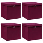 Boîtes de rangement 4 pcs Rouge foncé 32x32x32 cm Tissu – L’organisation à portée de main