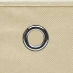 Trouvez la solution idéale pour organiser votre espace grâce aux Boîtes de rangement 4 pcs Tissu intissé 28x28x28 cm Crème. Conçues pour s’intégrer à merveille dans une variété d’étagères, ces boîtes apporteront une touche d’élégance à votre intérieur. Le tissu intissé qui les constitue est un choix écologique qui promet une grande résistance. Ces cubiques spacieux s’offrent à vous pour classer divers articles tels que les accessoires de mode et le linge de maison. Pour ceux qui valorisent la flexibilité, ces organisateurs de stockage se plient aisément, permettant ainsi une conservation efficace de l’espace lorsqu’ils ne sont pas employés. De plus, un œillet métallique, non seulement esthétique, agit comme poignée facilitant le déplacement et l’accès à vos effets personnels.
