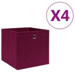 Boîtes de rangement 4 pcs Tissu intissé 28x28x28 cm Rouge foncé 29.99