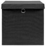 Boîtes de rangement avec couvercle 10 pcs Noir 32x32x32cm Tissu