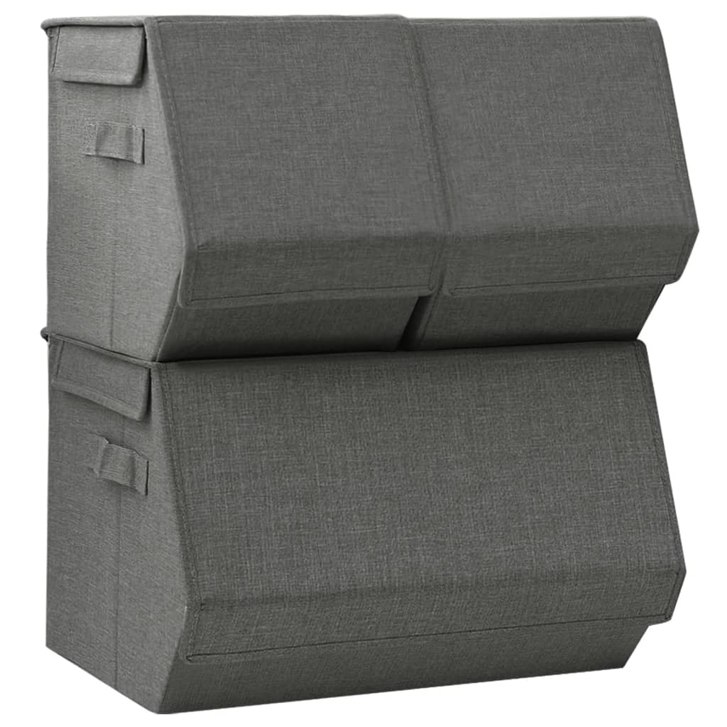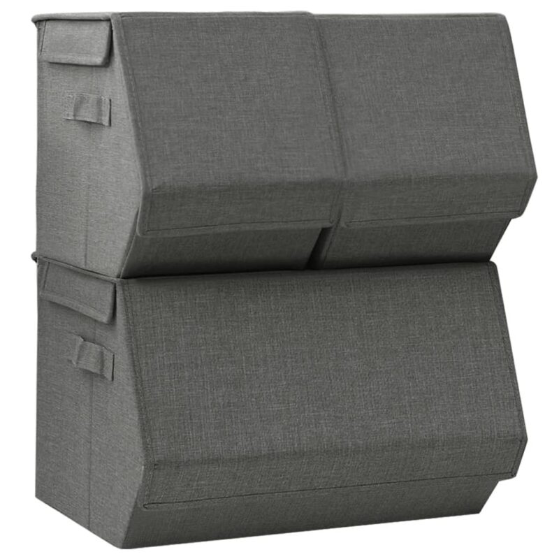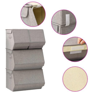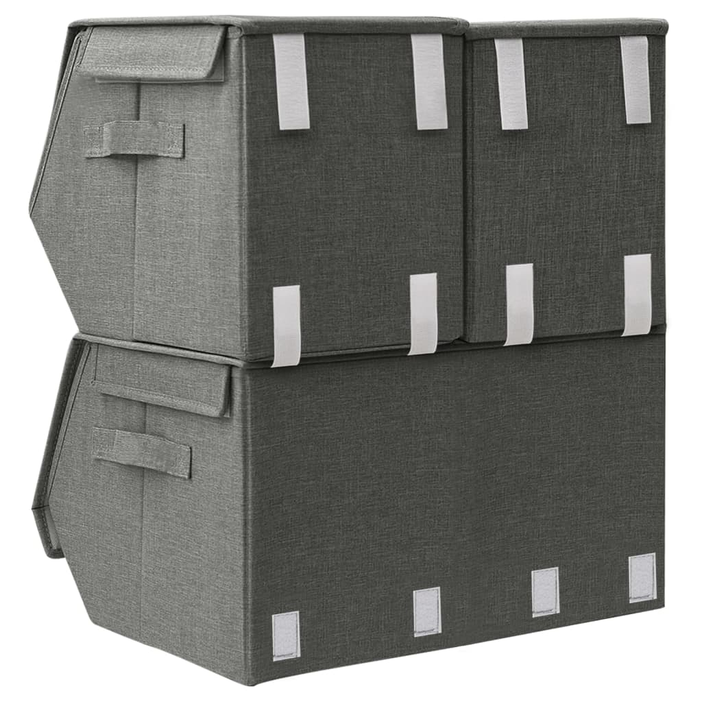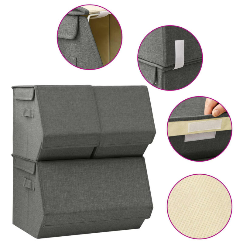 Avec leur couleur neutre et leur design épuré, ces boîtes de rangement empilables 3 pcs en tissu anthracite s’intègrent parfaitement à tout type de décoration intérieure tout en vous aidant à garder vos pièces ordonnées et sans encombrement.