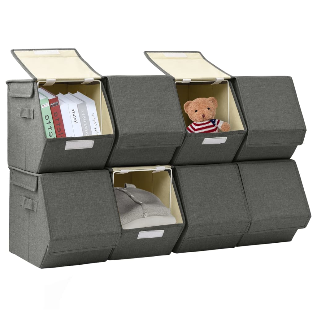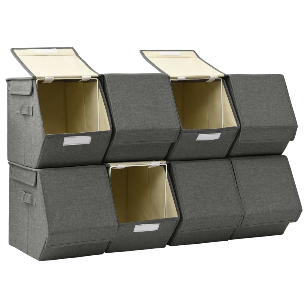 Détails des Boîtes de rangement empilables avec couvercle en tissu anthracite