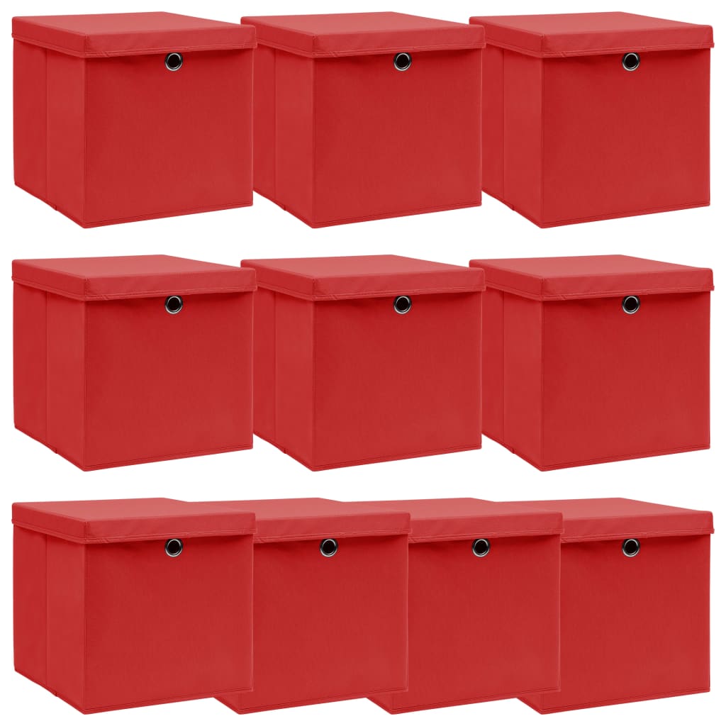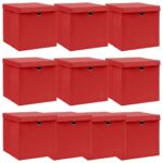 Détails sur les boîtes de rangement et couvercles 10 pcs 32x32x32cm en tissu rouge