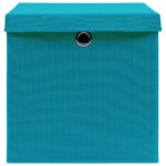 Découvrez les boîtes de rangement et couvercles 4 pcs Bleu 32x32x32 cm Tissu