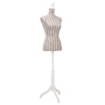Que ce soit pour construire une collection ou afficher des pièces élégantes, ce buste de couture est un choix distingué et pratique. Sa surface en lin à rayures ajoute une touche de sophistication et assure que chaque vêtement est mis en valeur avec professionnalisme.