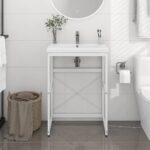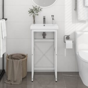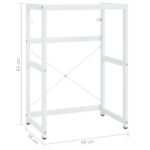 Optimisez l’espace de votre salle d’eau avec ce Cadre de lavabo de salle de bain Blanc 59x38x83 cm Fer. Ce structure robuste en fer offre à la fois une esthétique épurée et une solidité à toute épreuve, grâce à son revêtement en poudre anti-corrosion. Son design ouvert non seulement embellit l’espace, mais il permet également un accès direct à vos serviettes et accessoires de bain. Ce meuble de salle de bain moderne se distingue par sa facilité d’entretien, un simple coup de chiffon humide suffit pour le maintenir propre et brillant.