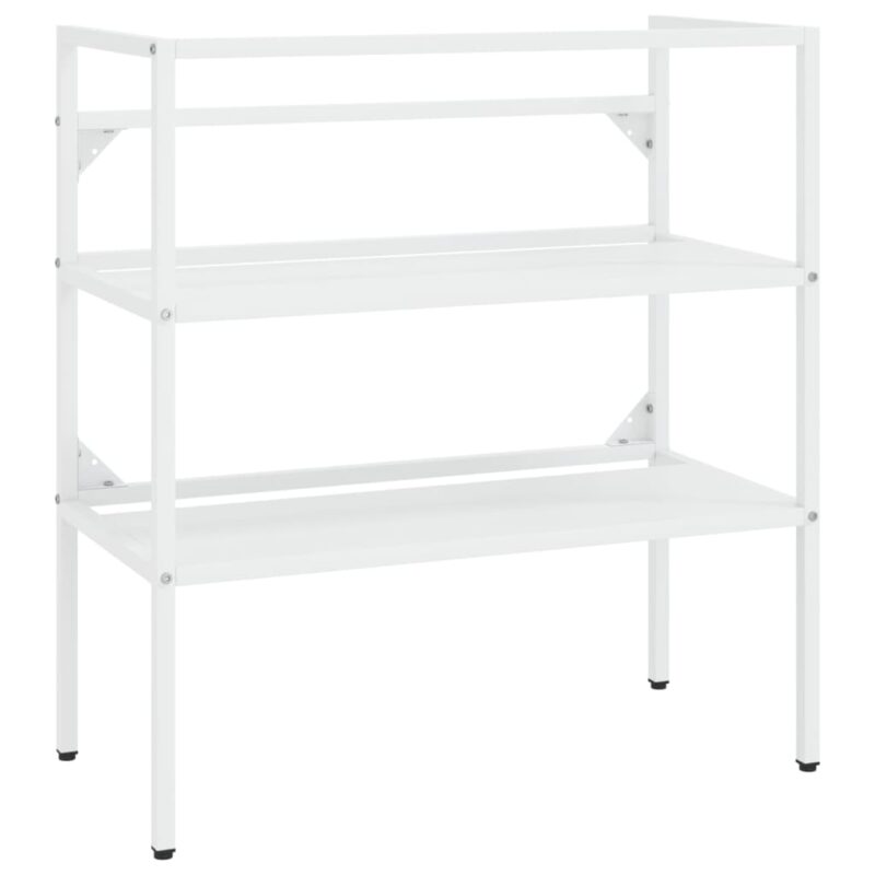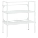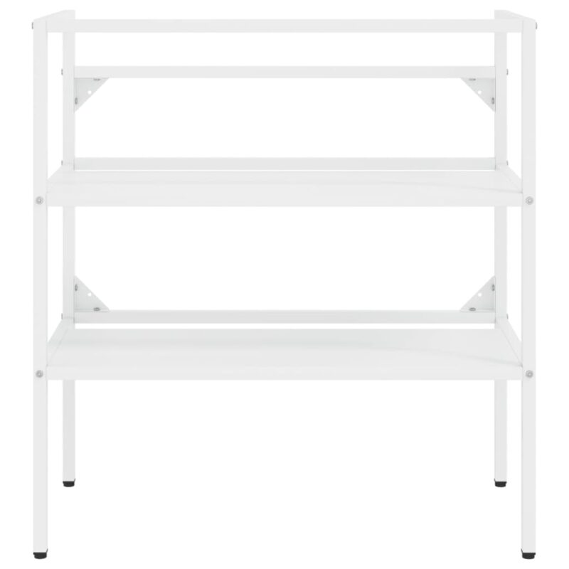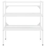 Optimisez l’espace de votre salle de bains grâce à ce cadre de lavabo de salle de bain Blanc 79x38x83 cm Fer, conçu pour allier fonctionnalité et esthétique. Sa structure en fer robuste recouverte d’une peinture époxy résiste à l’usure du temps et aux conditions humides typiques des salles de bains. Ce support non seulement facilite l’accès à vos serviettes et à vos accessoires, mais il agrandit également votre espace de rangement. Très pratique, sa surface se nettoie d’un simple coup de chiffon humide.