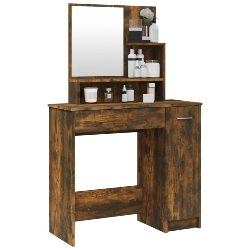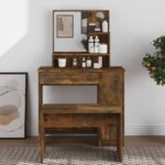 Achieve that classic and sophisticated vibe in your bedroom with this stunning dressing table. The Coiffeuse avec miroir Chêne fumé 86,5x35x136 cm effortlessly elevates your bedroom’s ambiance while offering a convenient spot to access your beauty essentials. Constructed from premium engineered wood, this vanity table boasts a smooth finish and stands strong against moisture—ensuring both durability and top-notch stability. Its easy-to-clean nature is what makes this piece both practical and charming.