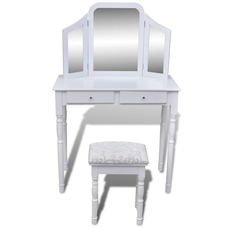 Découvrez la coiffeuse avec miroir et tabouret 2 tiroirs blanc