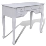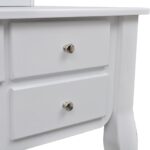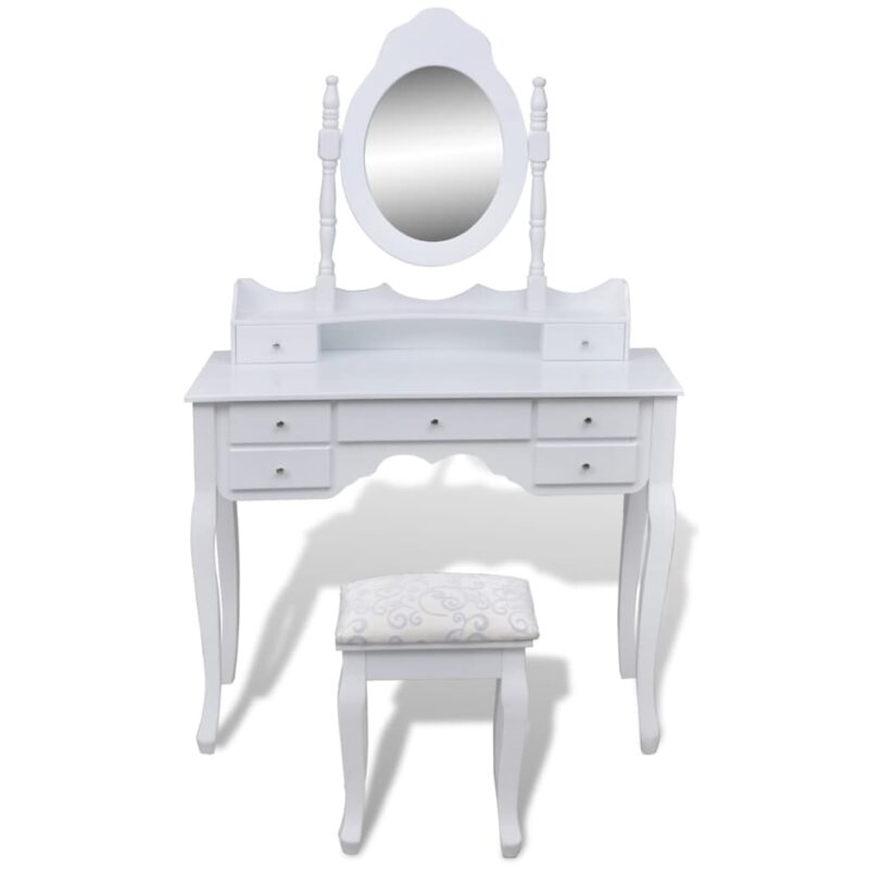 Offrez une touche d’élégance victorienne à votre espace personnel avec cet ensemble de coiffeuse avec miroir et tabouret 7 tiroirs Blanc. Fabriquée avec du bois de pin de première qualité, cette élégante coiffeuse, de teinte blanche immaculée, ajoute une note de raffinement à votre chambre ou dressing. Sa confection détaillée et soignée se distingue à première vue, rendant chaque moment d’utilisation spécial. Le miroir pivotant vous permet d’ajuster l’angle à votre guise, assurant une vision parfaite sous tous les angles. L’ensemble inclut un miroir amovible et une table qui peuvent être utilisés indépendamment. Les sept tiroirs spacieux offrent une abondance d’espace pour stocker vos bijoux, produits de beauté et autres affaires personnelles.