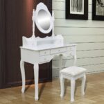 Découvrez l’élégance de la coiffeuse avec miroir et tabouret blanc