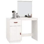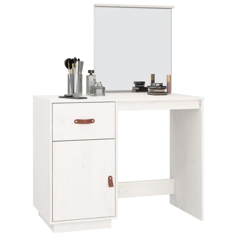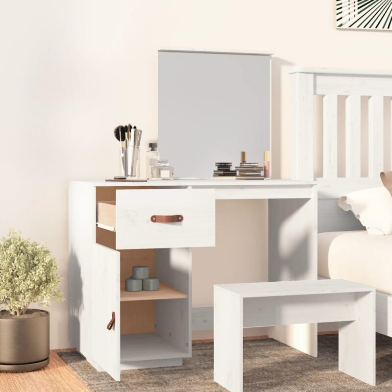 Élégance et fonctionnalité avec la coiffeuse blanc en bois de pin massif