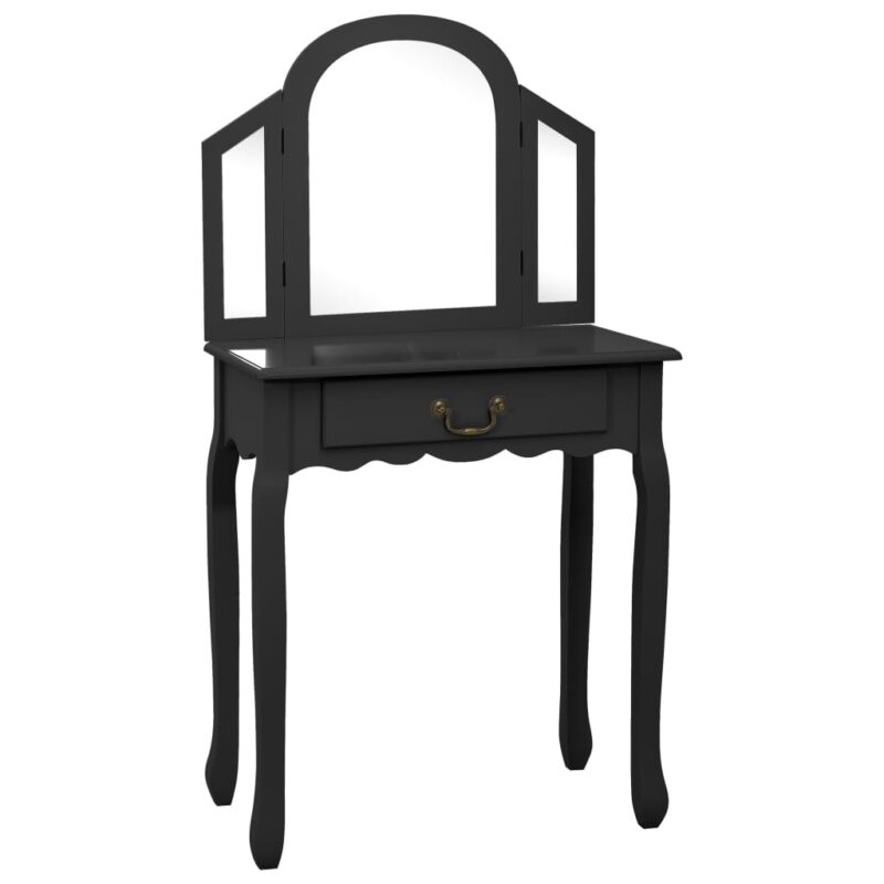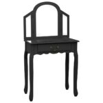 Construite avec un mélange de bois de paulownia robuste et de MDF moderne, cette coiffeuse mesure 65 cm de longueur, 36 cm de largeur et 128 cm de hauteur. Le tabouret, lui, présente des dimensions de 38 cm de longueur, 29 cm de profondeur et 45 cm de hauteur. Reposant précisément à 75 cm au-dessus du sol, la surface de la coiffeuse est l’interface idéale pour vos activités de soin et de beauté. Doté d’un unique tiroir, ce meuble permet une organisation sans faille de vos essentiels.