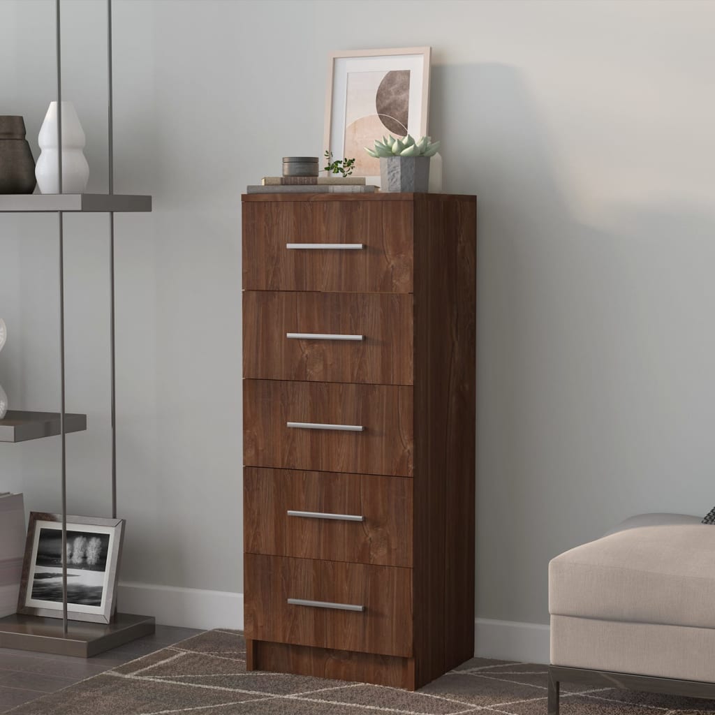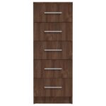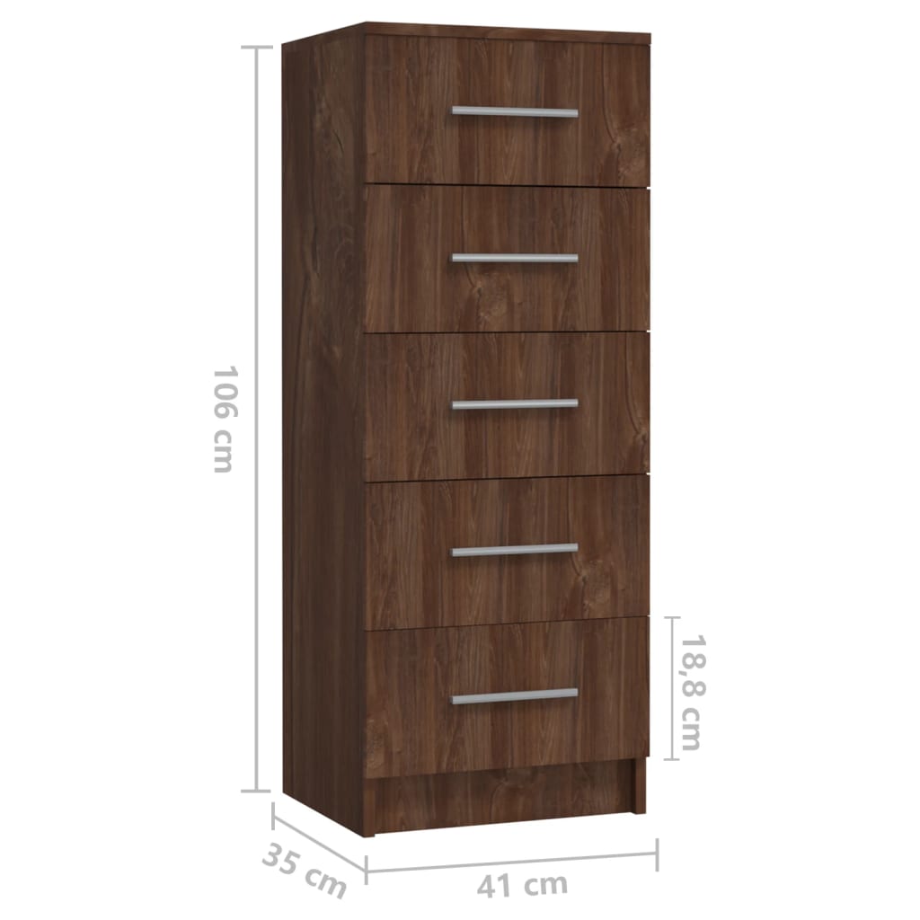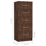 Optimisez l’ordre et la clarté de votre espace avec notre Commode haute Chêne marron 41x35x106 cm Aggloméré. Construite pour durer, cette élégante unité de rangement est conçue en aggloméré de haute qualité, assurant sa solidité et sa durabilité. Composée de cinq tiroirs spacieux, elle est idéale pour classer vos DVD, dispositifs électroniques, livres, ainsi que d’autres objets indispensables au quotidien. Sa surface lisse se nettoie aisément, un simple coup de chiffon humide suffit.