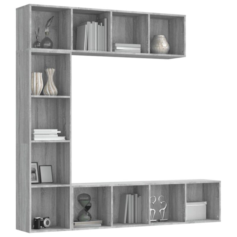 Détails du produit Ensemble bibliothèque/meuble TV 3 pcs Sonoma gris