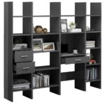 Note : L’image ci-dessus illustre l’agencement visuel et la répartition spatiale de cet ensemble de bibliothèque 4 pcs Gris brillant Aggloméré.
