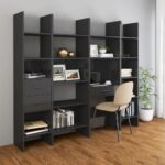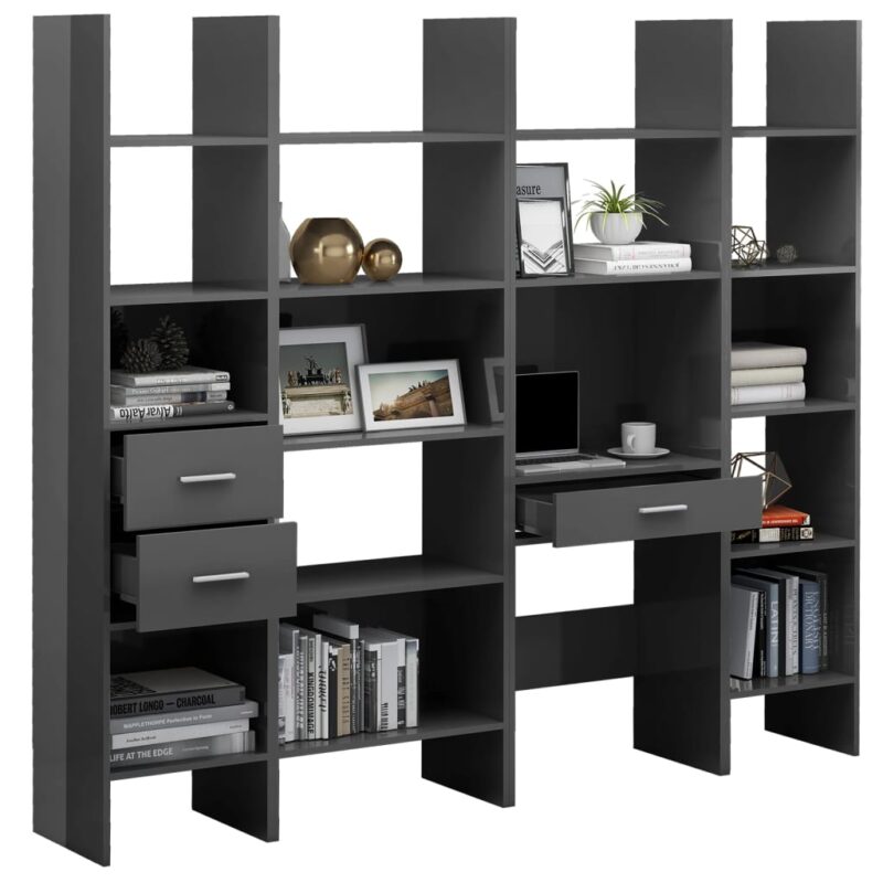 Cet ensemble de bibliothèque 4 pcs Gris brillant Aggloméré est une véritable invitation à mettre en valeur vos collections de livres ou vos objets déco préférés. Alliant durabilité et esthétique moderne, il incarne l’élégance fonctionnelle et se fond aisément dans toute décoration. Fabriqué en aggloméré de première qualité, cet ensemble garantit une solidité exemplaire pour un usage au long cours.