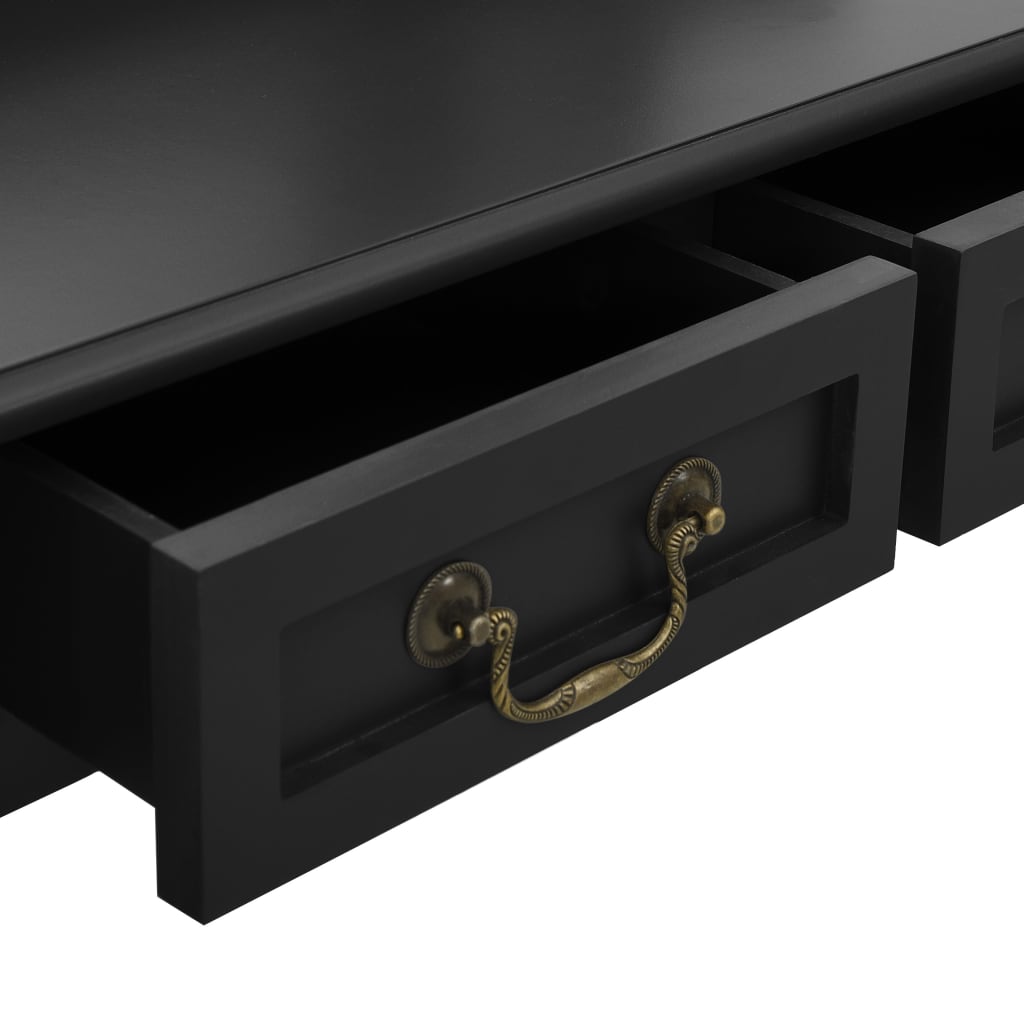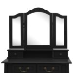 Begin each day in the lap of elegance with our Ensemble de coiffeuse avec tabouret Noir 80x69x141 cm Paulownia. Crafted with exceptional paulownia wood, this coiffeuse emanates luxury with its victorian-inspired clawed legs. Its various drawers, coming in four distinct sizes, alongside an open compartment, provide ample space for your cosmetics and jewels. The tabletop doubles as a chic stage for perfumes or other cherished items. An accompanying stool, boasting a wood base that mirrors the coiffeuse’s aesthetic, is equipped with a cushioned, backless seat for comfort. Completing this exquisite piece is the in-built tri-folding mirror that effortlessly accentuates its well-structured silhouette with a modern twist.