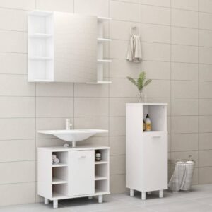 Ajoutez un charme indéniable et une fonctionnalité à votre salle de bains avec notre ensemble de meubles de bain 3 pcs Blanc brillant Aggloméré. Compris d’une armoire murale, d’un meuble sous vasque et d’un miroir élégant, cet ensemble est l’incarnation du design moderne allié à une praticité exceptionnelle. Solide et robuste, il est conçu en aggloméré de qualité supérieure pour garantir durabilité et stabilité.