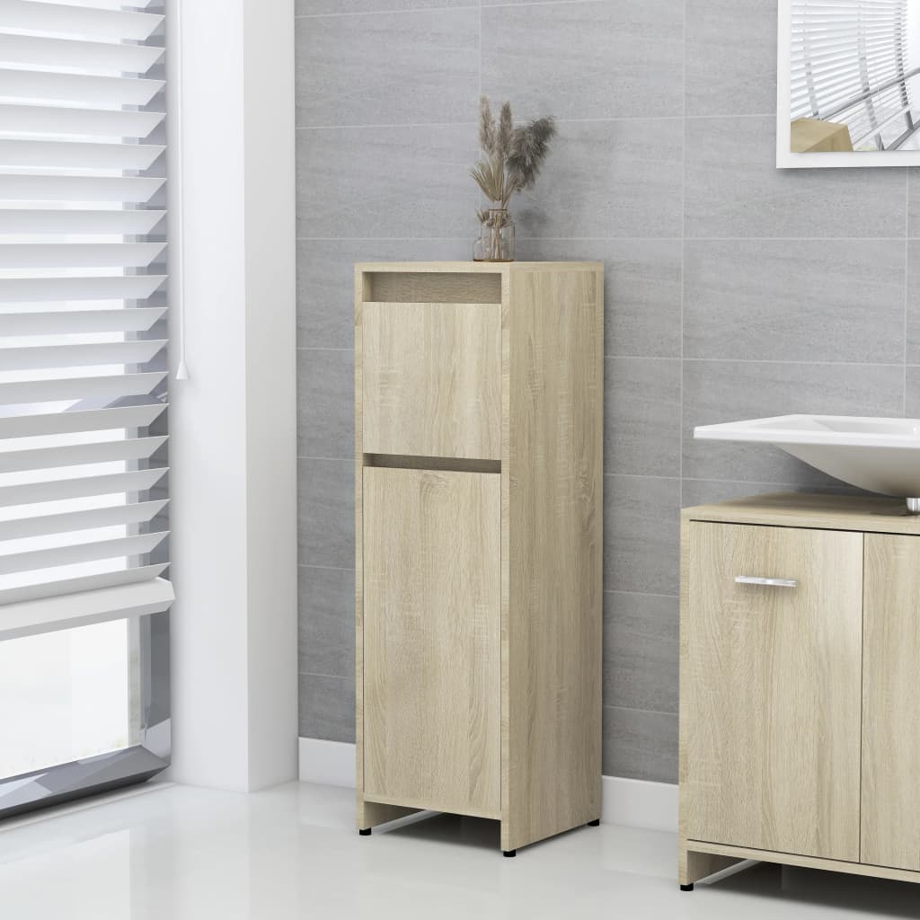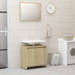 Optimisez votre espace de salle de bain avec style grâce à cet Ensemble de meubles de bain 3 pcs Chêne sonoma Aggloméré. Cet assortiment inclut une armoire semi-haute, une armoire ajustée pour s’imbriquer sous votre lavabo et un miroir élégant, tous conçus pour améliorer l’efficacité et l’esthétique de votre pièce d’eau. L’aggloméré de qualité supérieure assure la longévité et la stabilité de chaque meuble.