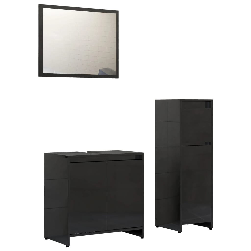 Transformez votre salle d’eau grâce à l’Ensemble de meubles de bain 3 pcs Noir brillant Aggloméré. Cet agencement chic comprend une armoire multifonction, un meuble sous vasque pratique et un miroir élégant, offrant ainsi une solution de rangement à la fois pratique et esthétique. Construit avec de l’aggloméré de qualité supérieure, cet ensemble est conçu pour résister à l’épreuve du temps et maintenir sa finition éclatante.
