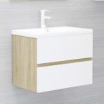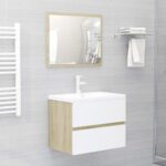 Découvrez l’ensemble de meubles de bain Blanc et chêne sonoma Aggloméré